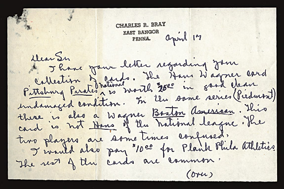 from Bray, there really weren't many dealers in rare vintage cards in the 1950's.