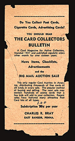 as well as advertising flyers which Bray sent for the American Card Catalog