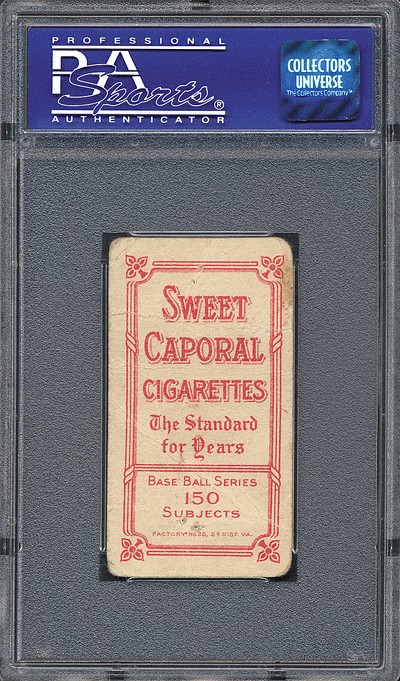 for Sweet Caporal Cigarettes is boldly printed on the reverse. Graded PR-FR 1 by PSA, the card naturally has various